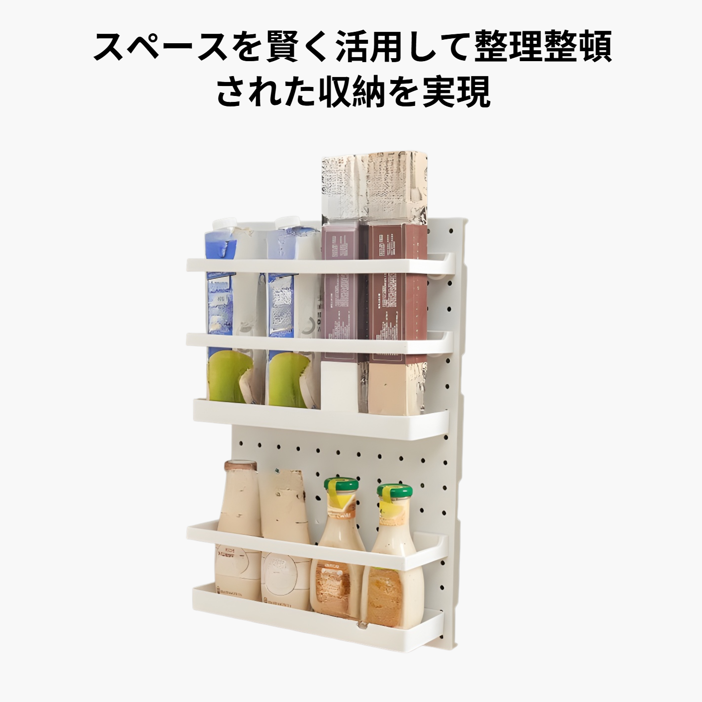 壁掛け収納ラックで省スペース収納実現。簡単設置、耐久性素材、多用途対応。整理整頓に最適。